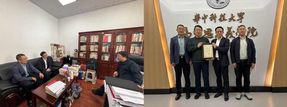 11时许,中心团队转赴华中科技大学马克思主义学院,拜访院长岳奎教授。岳奎教授是马克思主义中国化研究领域的青年学术带头人、领军人才,在红色文化资源开发与转化方面成果丰硕。朱志刚主任为其颁发学术委员会委员聘书,并就中心发展听取指导意见。