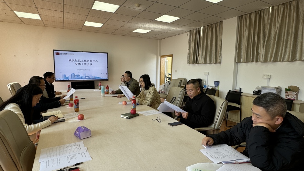 2025年11月20日,武汉红色文化研究中心(以下简称“中心”)在J05B501会议室召开专题工作会议,中心主任、部分副主任及办公室人员参会。中心常务副主任王飞主持会议。会议围绕重大课题评审、研究员大会筹备、2024年度开放课题结项工作以及拟赴浙江理工大学调研计划等议题展开深入讨论,并明确了下一阶段工作重点。